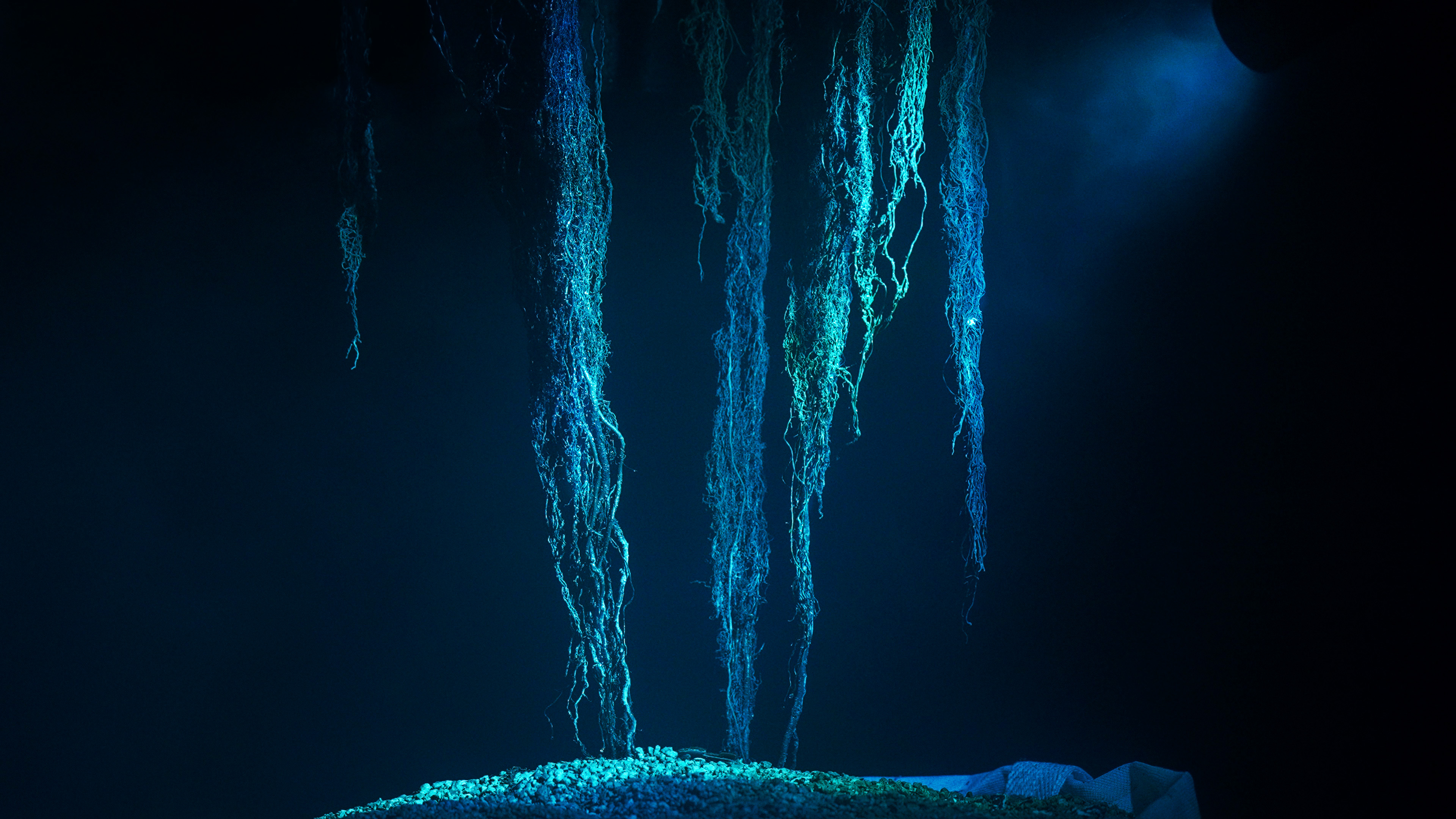 The journey of “Megaliths in the Roots Garden” doesn’t end at its upper level; it continues downstairs. The roots of the surrounding trees extend into the newly opened lower floor, hanging freely in the air as if suspended between two worlds, nurtured by an environment that allows them to grow mid-air. Clusters of megaliths rise around them, creating a striking dialogue between nature and the built environment. This hidden extension of the artwork tells a story of resilience and coexistence, revealing how life can flourish in the most unexpected places.