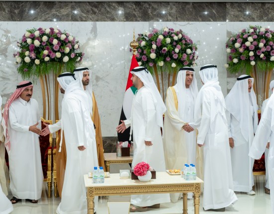 During the reception, His Highness the Ruler of Sharjah received congratulations on this blessed religious occasion from sheikhs, senior officials, Abdulrahman bin Mohamed Al Owais, Minister of Federal National Council Affairs, senior officers of the Sharjah Police and the Emiri Guard, the Sharjah Civil Defence Authority, the Sharjah Police Academy, and the General Directorate of Residency and Foreigners Affairs in Sharjah, as well as citizens, members of tribes, dignitaries, and other officials.